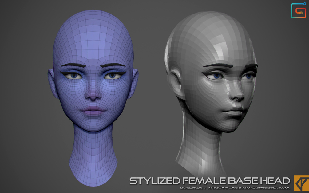 Stylized female head base mesh for zBrush. An excellent start for your stylized head models! Light polypaint included. Lashes and eyebrows thrown in too. The set includes ztl and obj files.